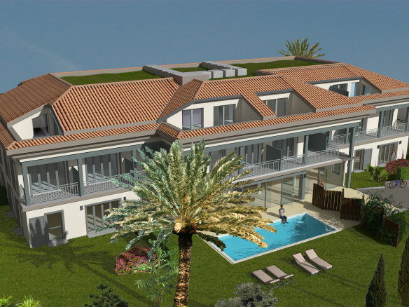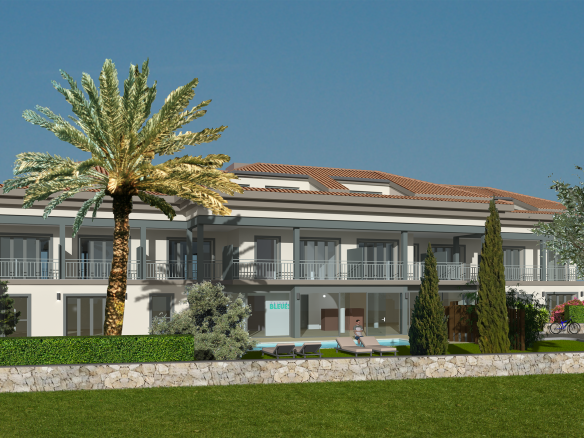 La résidence « Les Saisons Bleues », pour une parfaite intégration de son bâtit, est conçue comme une grande demeure provençale avec sa toiture à 4 pans en tuiles vieillies et ses façades claires et distribue tous ses appartements sur trois niveaux.