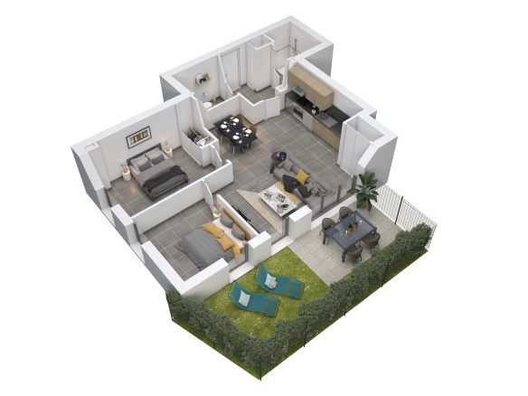 L’atmosphère de bien-être qui s’exprime d’emblée au travers de l’architecture est aussi l’émanation du calme et de la tranquillité des lieux. Les jardins des rez-de-chaussée, plantés d’essences méditerranéennes aux senteurs multiples, les terrasses et tropéziennes des étages supérieurs finissent d’attiser l’envie d’y résider.